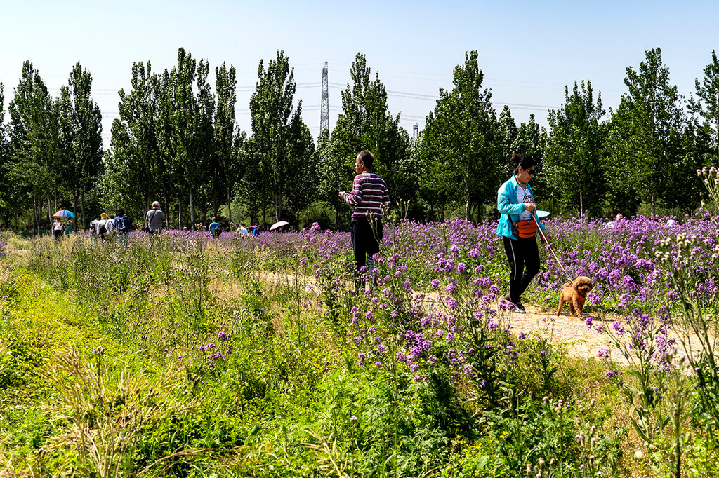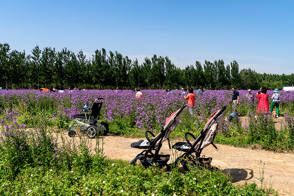 现在北京大兴建设的越来越好,当地的百姓说魏善庄镇曾经油菜花时就有许多游人来到这里,生态园、牡丹园等,从4月开始一直有着鲜花陪伴,五月初开始有大片蓝香芥盛开,紫香芥名字对百姓有些陌生,在北京更是不多见。