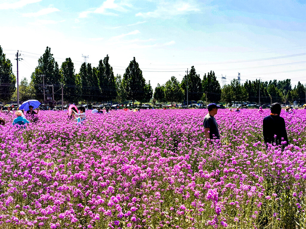 大兴魏善庄镇几百亩的紫香芥,百姓称她是紫色油菜花,是非常美丽的植物。香芥的花朵颜色丰富,有白色、紫色、蓝色等.....。