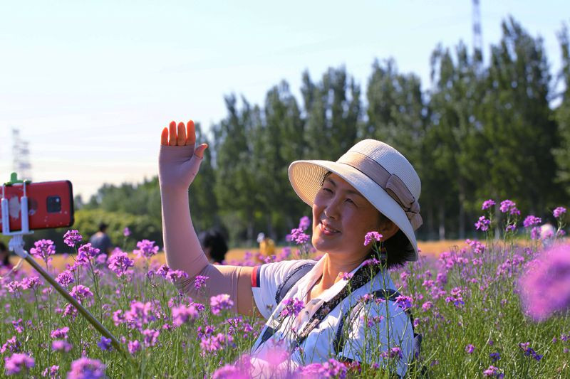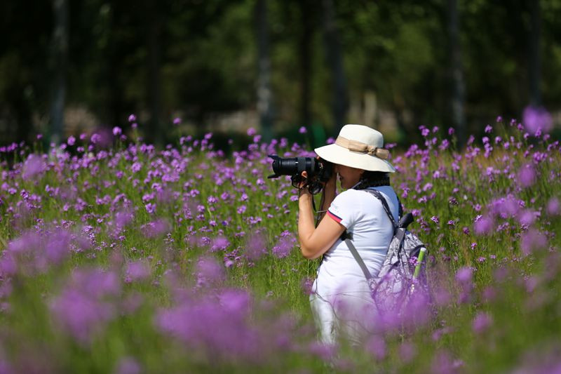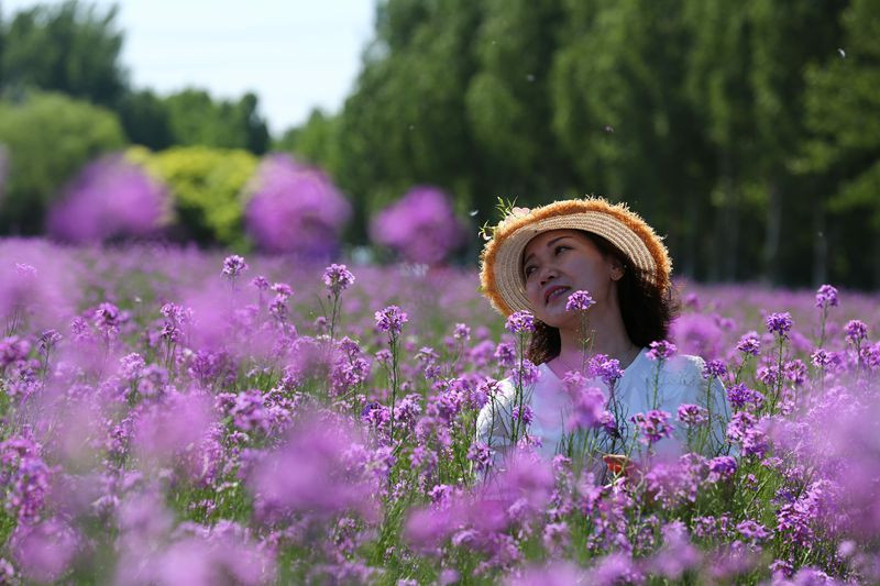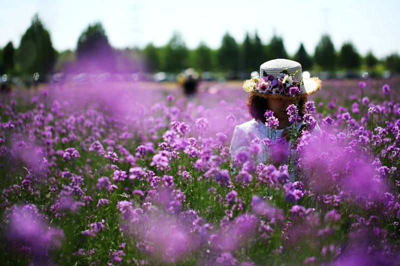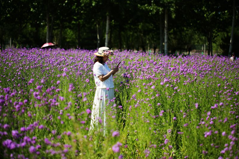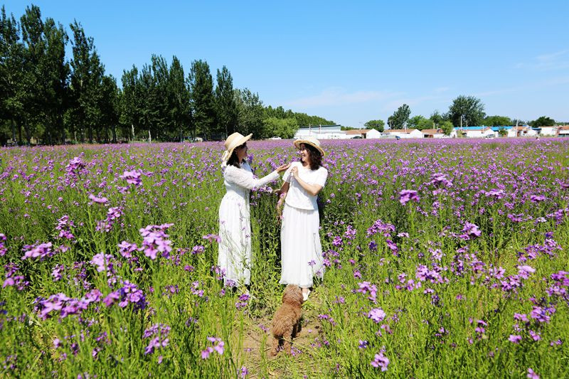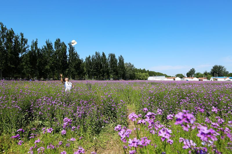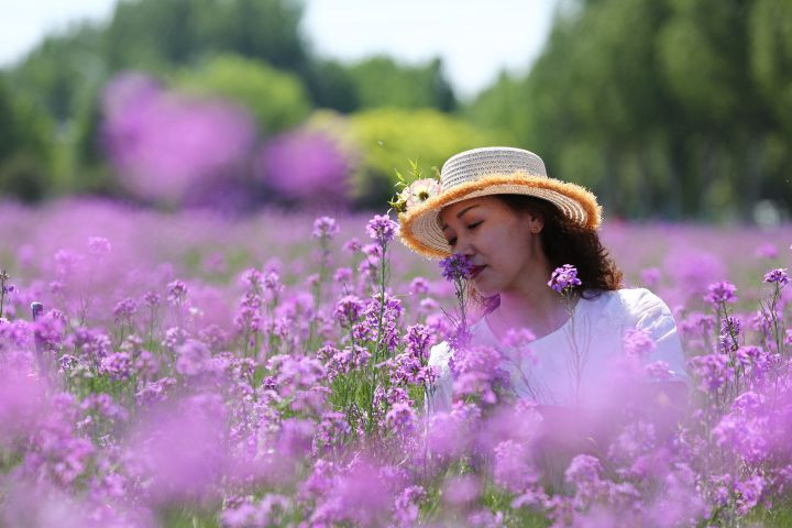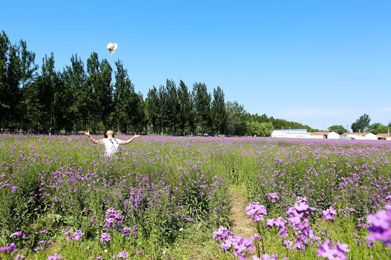 蓝香芥 蓝香芥这片紫色的花海,种植的是蓝香芥,蓝香芥原产于欧亚大陆,在中国可种植区域广,长江流域大部分地区、黄河中上游地区均可种植,为生长期较短的多年生或二年生草本植物。垂直、多枝,高约60~90厘米,通常不超过120厘米。冠幅30~60厘米。叶缘锯齿状,椭圆至披针形,暗绿色。花有白色、淡紫色或紫色,花径1.2~2.4厘米,4片花瓣,总状花序,与二月蓝极为相似。又因为花与福禄考也相似,都在一根长柄上簇生,因此亦常被称作"野福禄考",但蓝香芥花瓣比福禄考少一片。花具有丁香般的清新香味,尤其是在傍晚,香味浓郁。