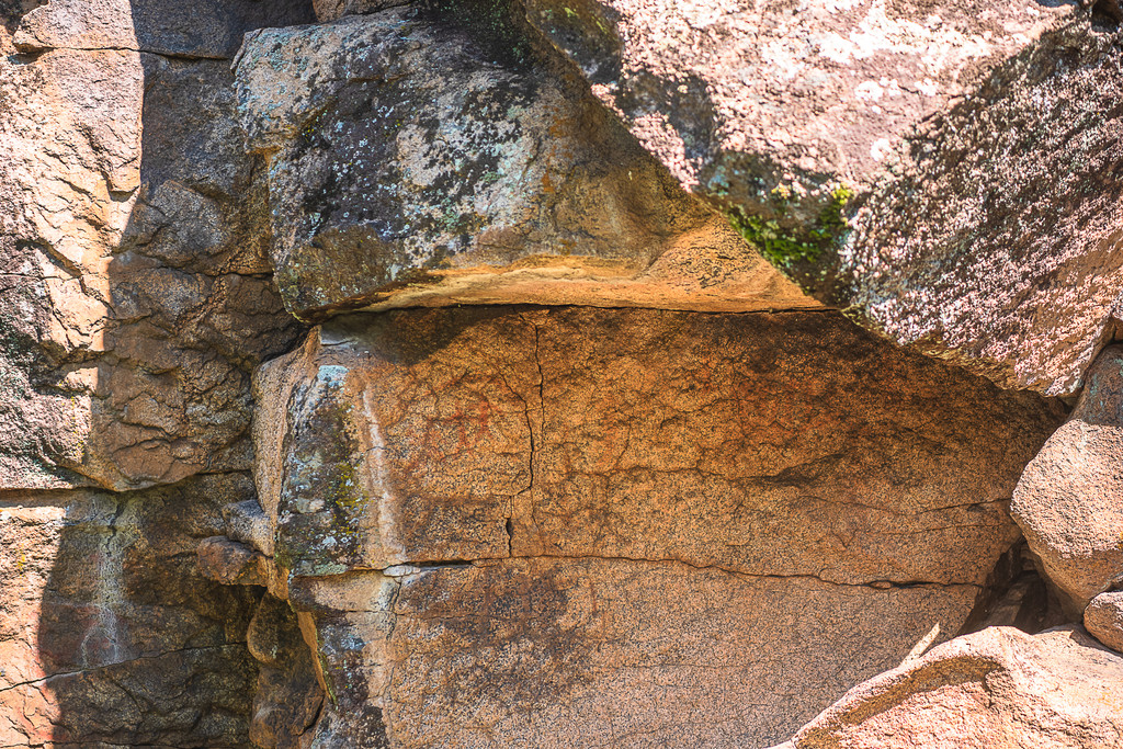 如果不是在导游的带领和讲解下,这岩画说什么也是自己无法发现的。其实,岩画所在的高度和危险程度都是不存在的,只是出于保护的关系,被铁栏杆围挡住了,无法近前观看。而且随着年代久远,风吹雨淋造成的风化,岩画的色彩并不是非常浓烈了。据专家判断,这天台山岩画距今至少八千至一万年,属旧石器时期由鄂温克的先人绘制。绘制方式是用指头或羽毛醮着动物的血调和铁石粉,画出的各种造型......