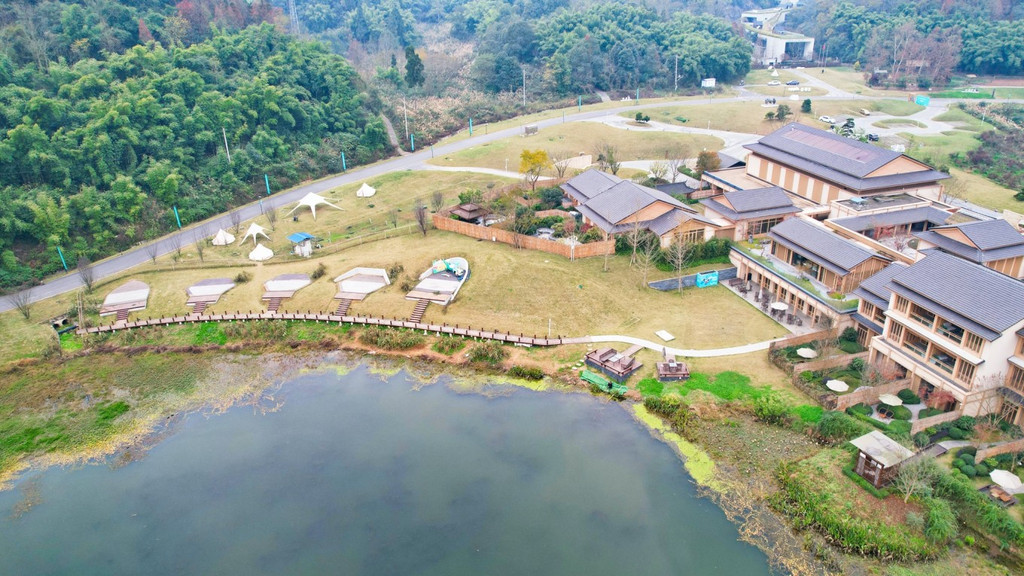 远离城市的喧嚣,隐居于万亩山水湖间。这座位于 大邑 云上旅游度假区的木莲庄酒店,共有三层,仅有30余间客房。但是酒店配有餐厅、宴会厅、健身房、儿童活动中心、棋牌室、游泳池、室内外的温泉,一应俱全的酒店配套设置,成就了舒心的度假时光。