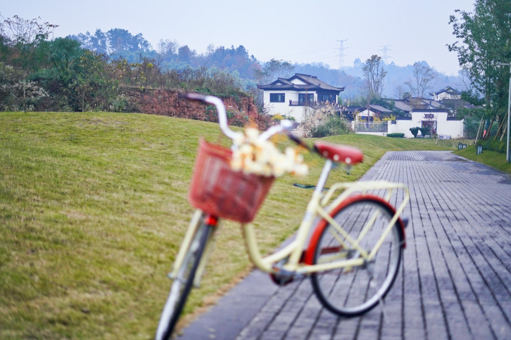 如果你喜欢骑行,不妨像我一样,从前台借一下自行车。骑着复古的自行车,游览这云上万亩山湖,感受百里诗画田园的旖丽风光。
