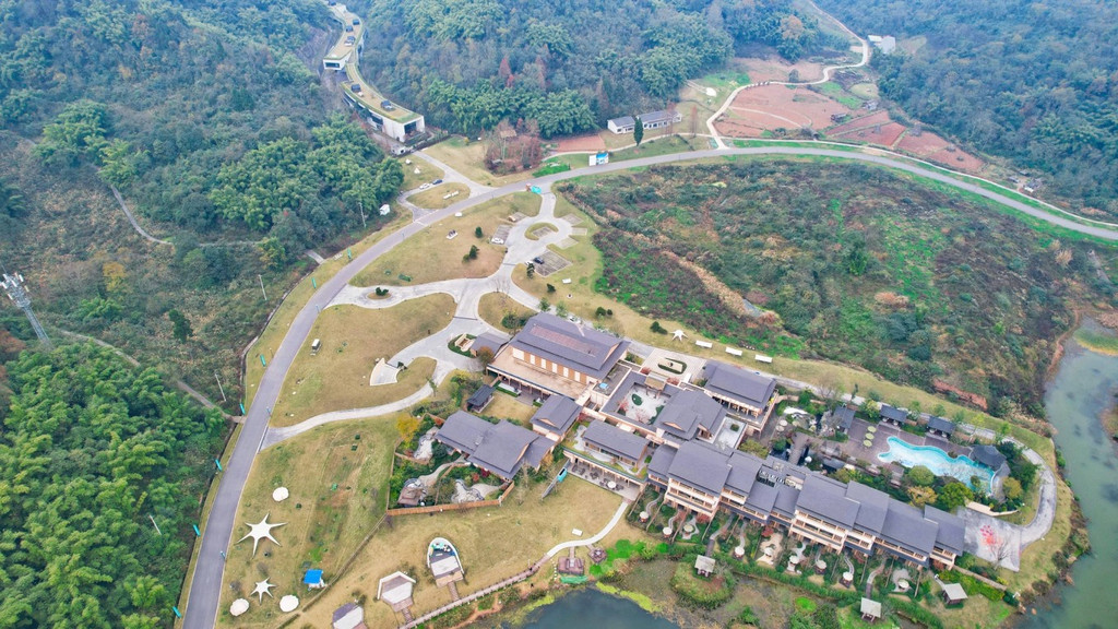 迎着冬日暖阳,我同好友一起,从 成都 出发,驱车1小时左右抵达了位于 成都 市 大邑 县青霞镇洞口街1000号的 成都大邑 木莲庄酒店。一路上,青山隐隐,水影迢迢,越靠近酒店景色愈发幽静。