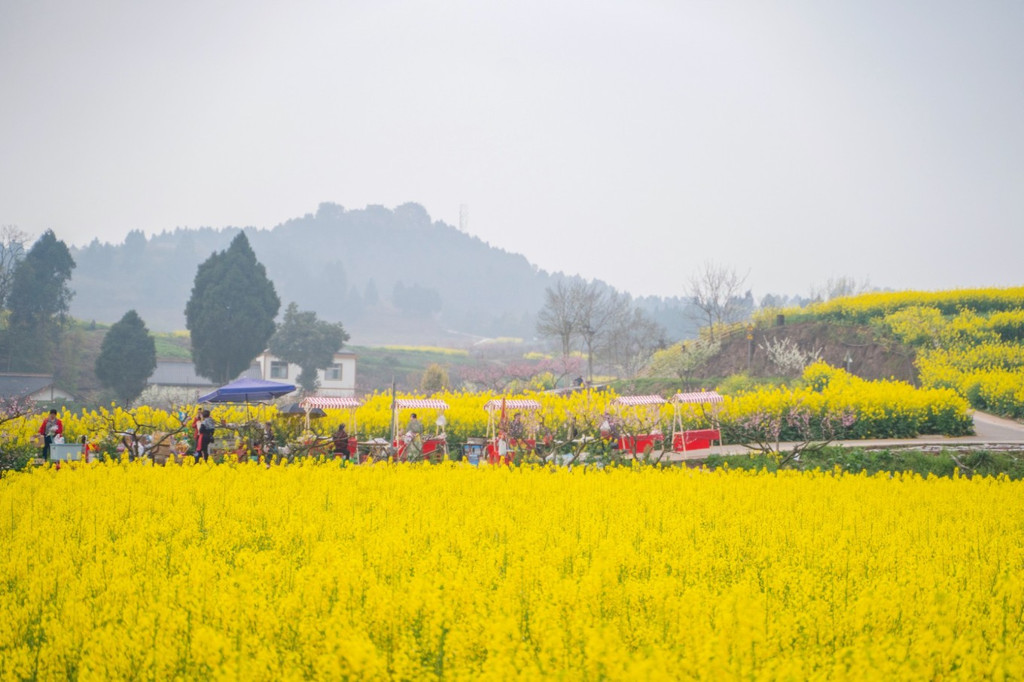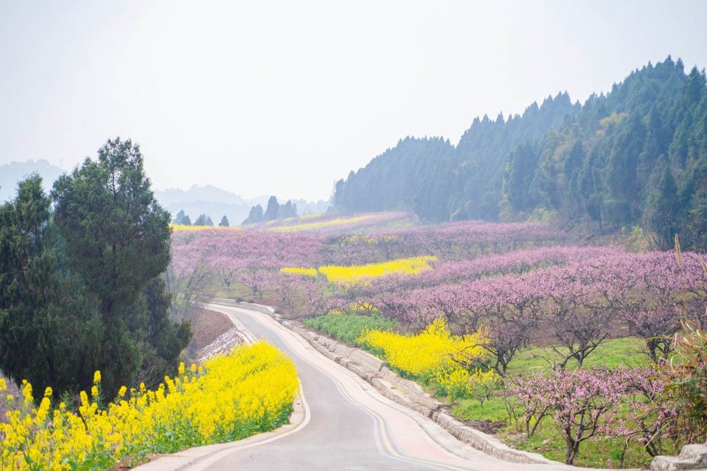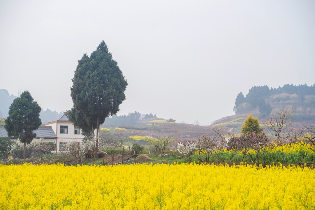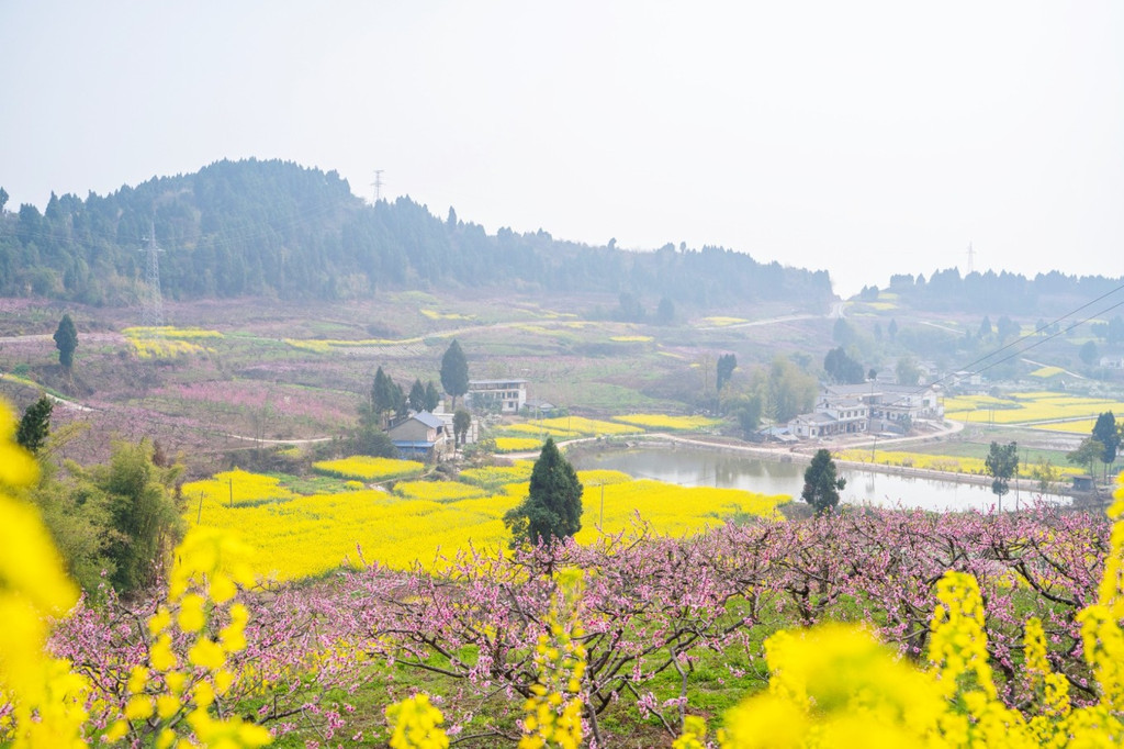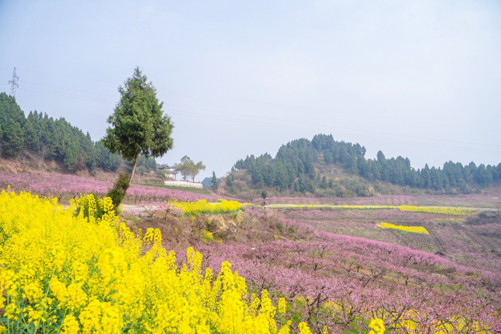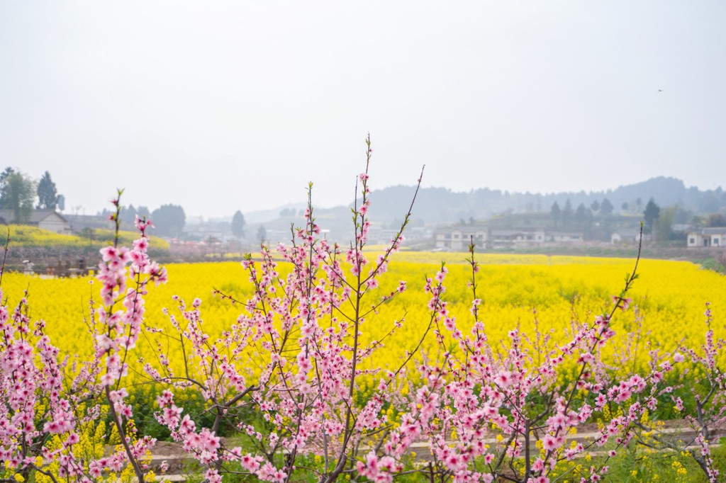 3月大片的油菜花海和桃花盛开,就如同走进了世外桃源一般。