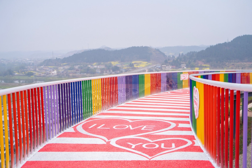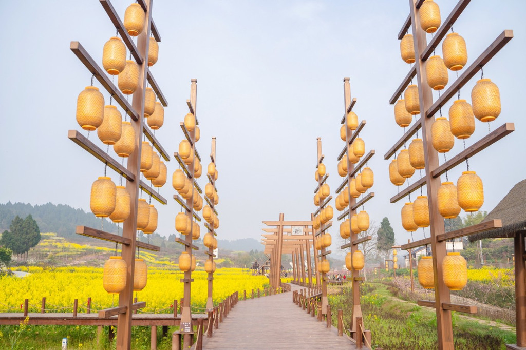 整个栈道沿着田间修建,走在乡间小道上,空气中弥漫着各种花香,心情也变得格外舒畅。