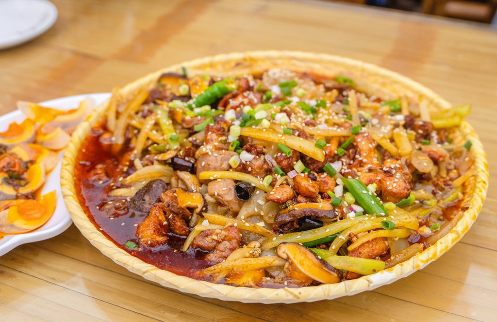 宋井桃源这里的特色美食是凉粉和卓筒鸡,中午我们吃了这家很火的卓筒鸡。