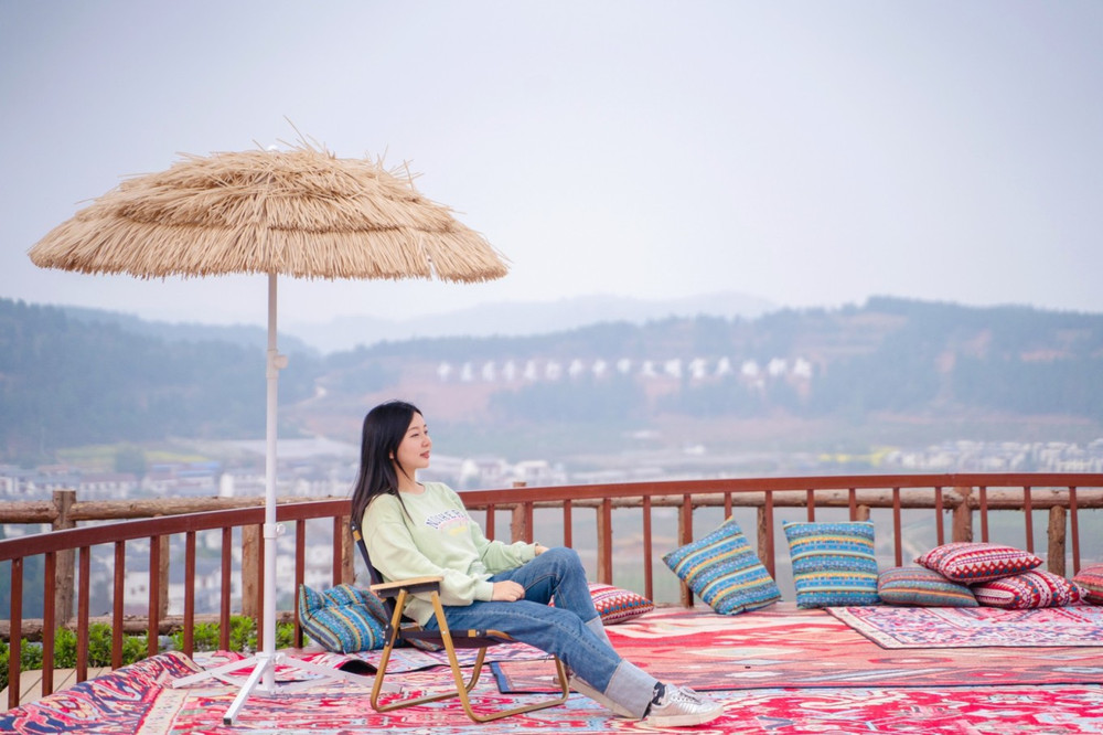 整个山顶露营基地有很多网红打卡的项目,这里可以俯瞰整个土门垭村。