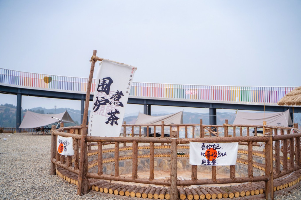 除了烧烤,还能围炉煮茶,过来时遇到一群搞公司团建的游客,他们唱着歌,烤着串,氛围感十足。