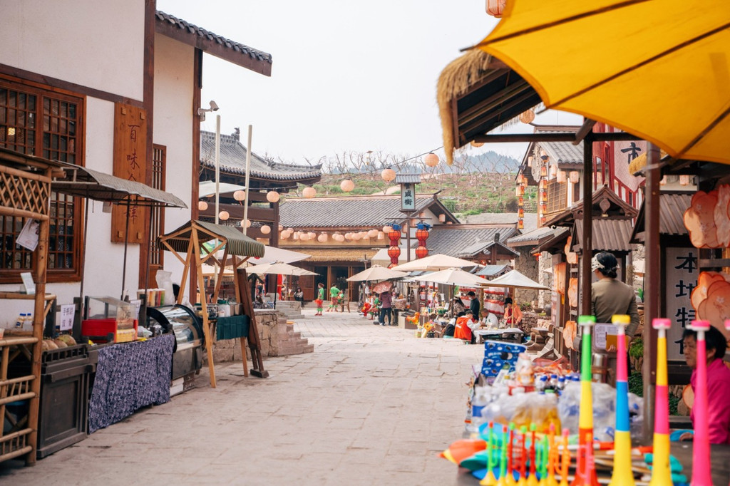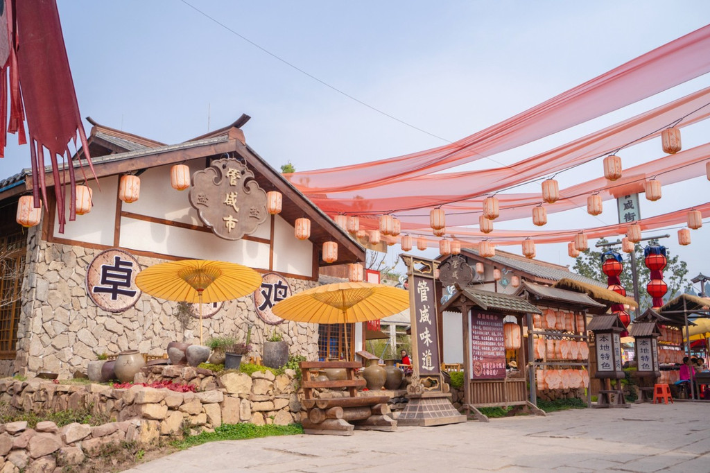 接待大厅往上是景区的特色景点“管咸市”,整条街道是仿宋风格。