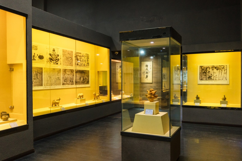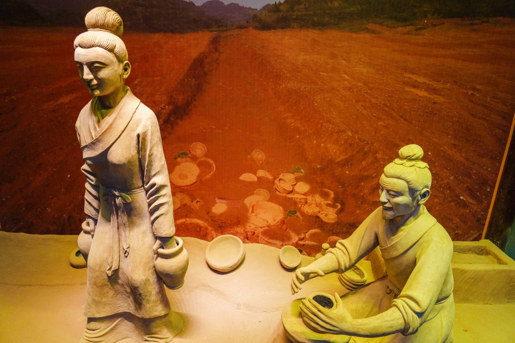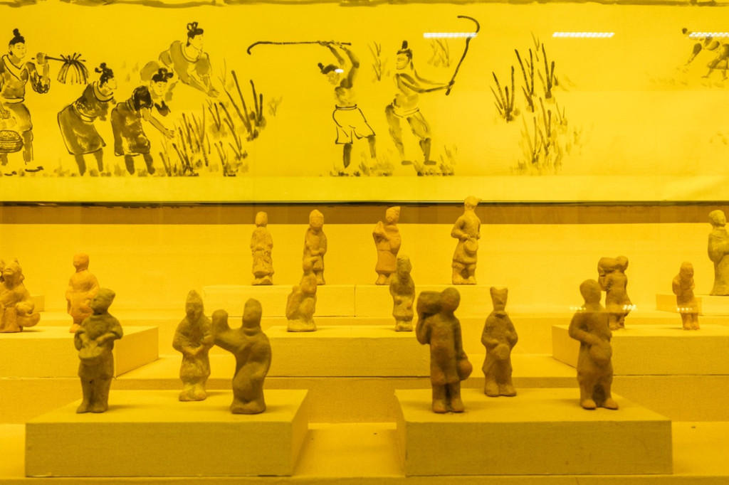 汉陶博物馆内现场展出的这些文物大多出土于郪江两岸,既有汉风民俗,又有青铜文明,构成了一幅生动的汉代立体画面,逼真地再现了郪国文明。