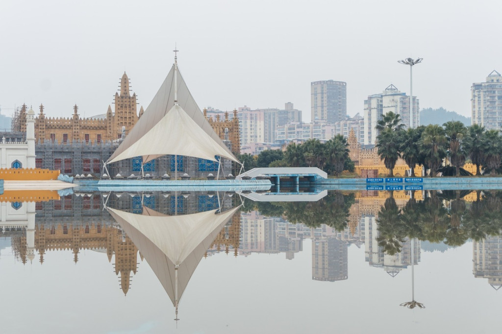 园区的建筑大多都是中东风格,热带园林的景观让人有种置身国外度假的感觉。