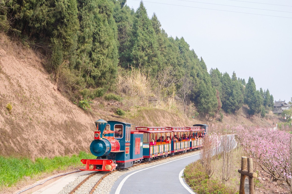 宋井桃源这是辆开往春天的列车,火车穿梭在桃林之间,一路收集关于春天的美好~