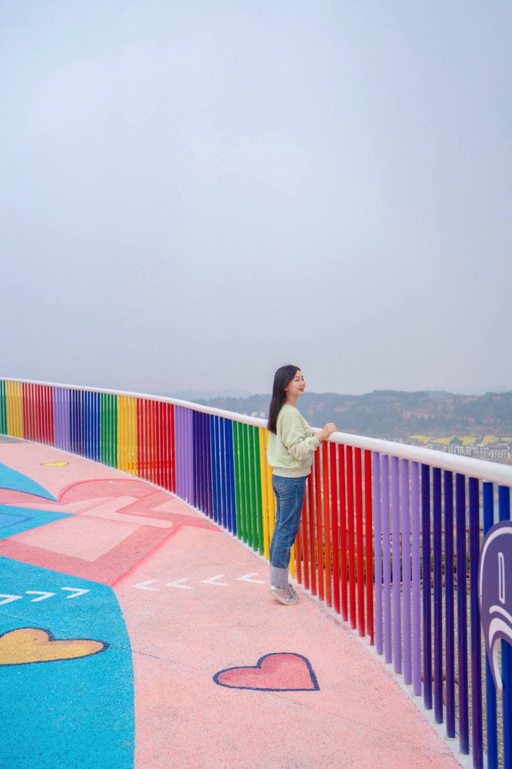 山顶还有个彩虹云梯,也叫莫比乌斯爱之环。各种彩色的栏杆和涂鸦,拍照真的是太好看了。