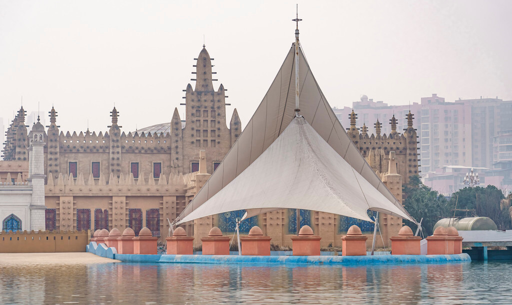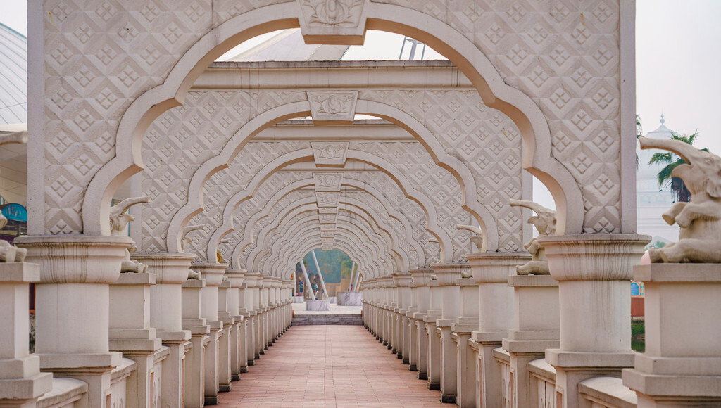 特别是这个角度的照片,看上去与泰姬陵经典打卡照片极其相似,过来时人站在拱门前面一点拍摄取景,出来的效果会很好看。