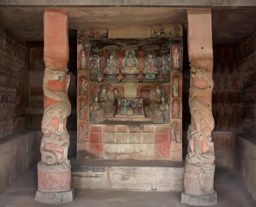 安史之乱后,佛教的重心迁移到巴蜀地区,南北佛教文化交融汇聚,许多文人雅士名工巧匠也随唐玄宗来到巴蜀地区,带来了大足石刻的第一次艺术高峰。