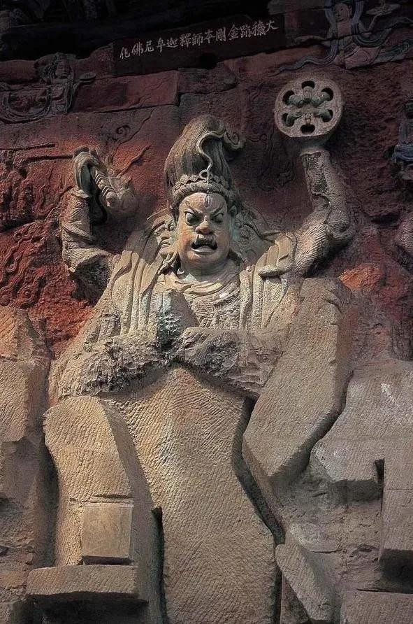 但彼时,蒙古军正在攻打四川,大足未能幸免于难,零星的战火时有缭绕,那一尊最为生动的“大秽迹明王”雕刻,身下遗留着没有完工的斧凿痕迹,这些痕迹之后,大佛湾的石刻造像戛然而止。