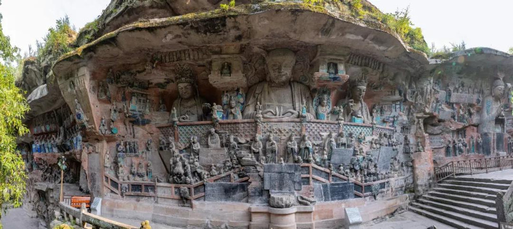 宝顶山大佛湾石窟全景 大足石刻研究院供图