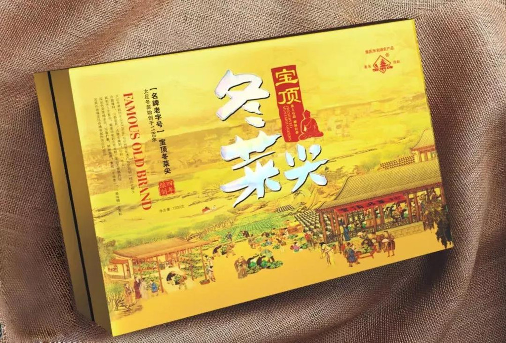 大足冬菜:距今已有100多年的生产历史,采芥菜嫩尖经二三年腌制而成,成品色泽油褐,质地鲜嫩,香味浓郁,质脆回甜,营养丰富,是烹饪调味佳品,曾获国家地理标志证明商标。