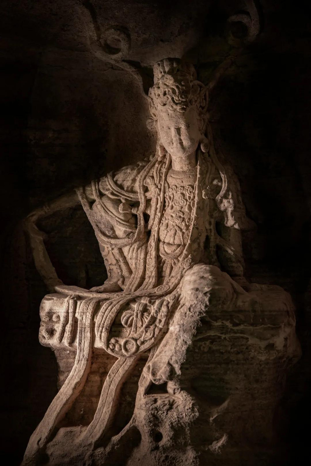 徜徉在石刻造像间,先看看说明牌上的指示,算一算他们的年龄,再面对千余年的时光,景仰地抬起头来——这里曾有过跨越一千多年的斧凿。