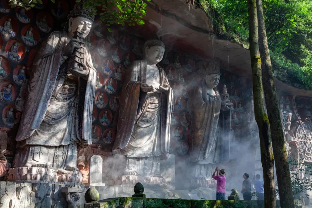 站在这些石刻像前凝视,似乎能回到往昔场景。长达千年的历程中,大足石刻记录着故事,也发生着故事。
