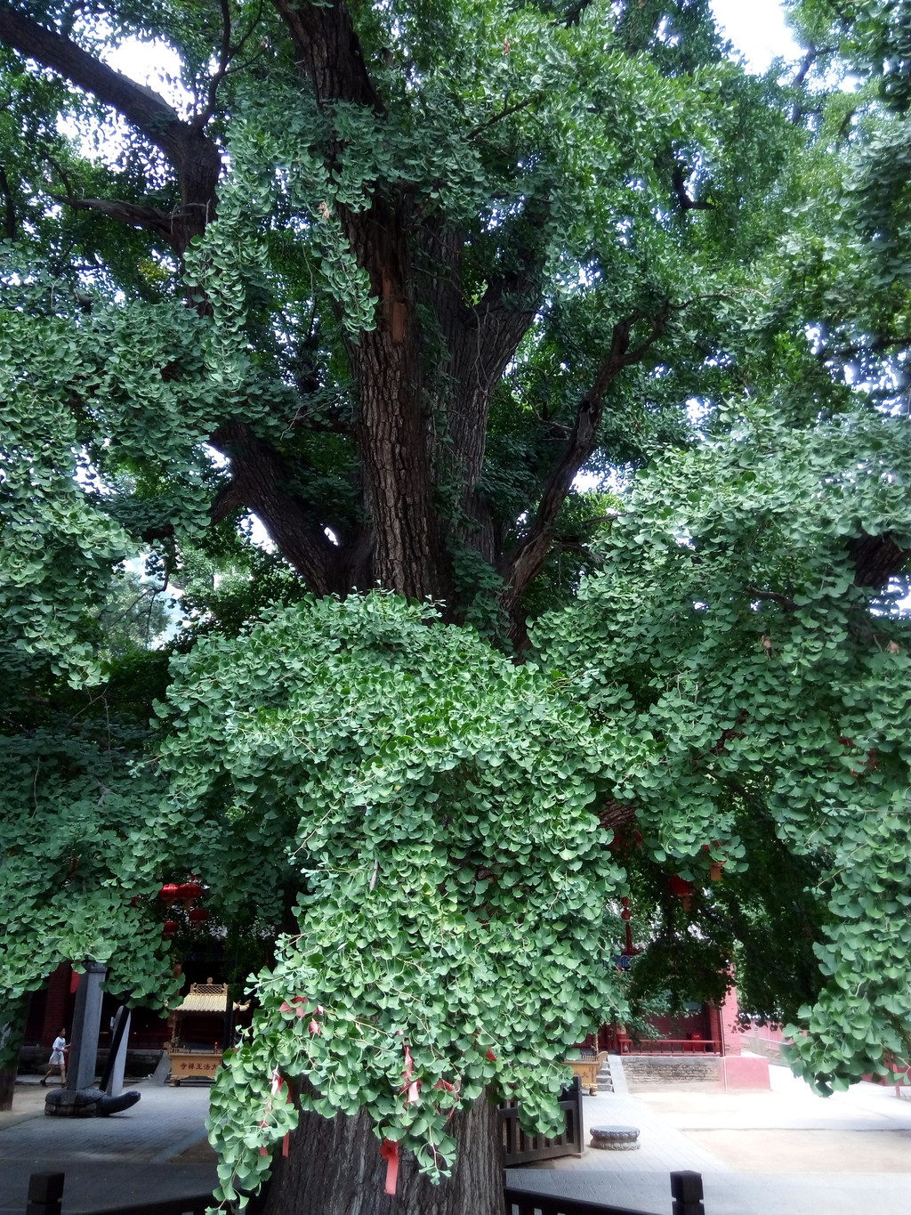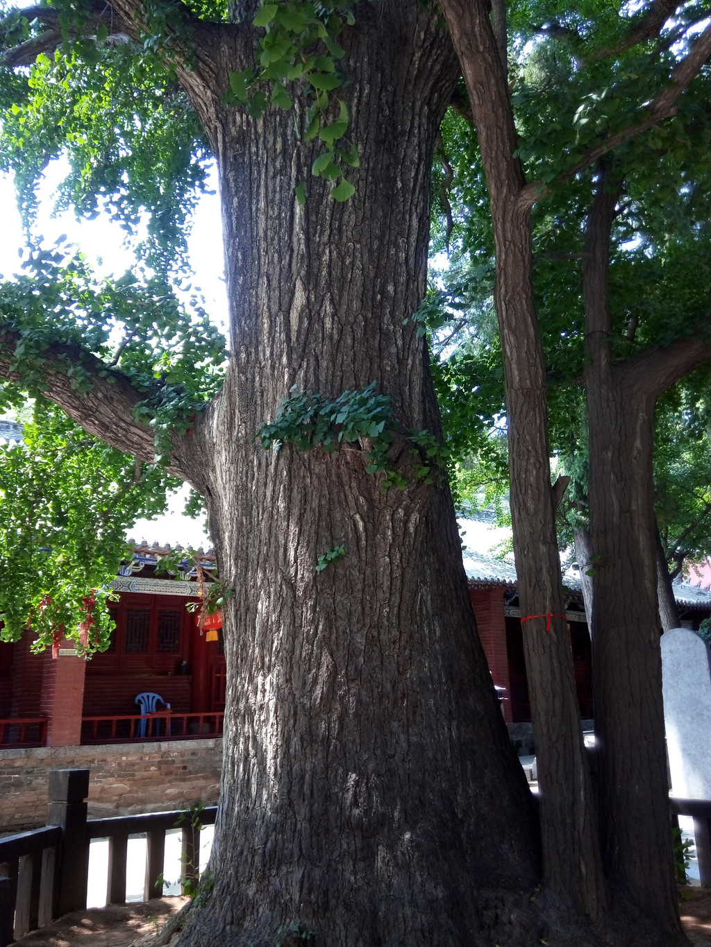 但网上称其为河南30多座隋唐塔中最高大的寺塔可能有误。法王寺塔附近的2号唐塔在2000年地宫发掘中获重大考古发现,出土国家一级文物在5件以上,因此,我对此地充满期待,进去后直奔寺后的山坡,但走到后院时发现因寺庙维修已将去后山的路口封了,但我仍不死心,甚至走到院外右侧山上察看,却被延伸上山的围墙所阻,无奈只得抱撼而返。寺内有2株由印度高僧种于公元71年的古银杏,为嵩山第1、第2号树种,虽近1950岁仍郁郁葱葱,略可弥补未见隋唐二塔之憾。