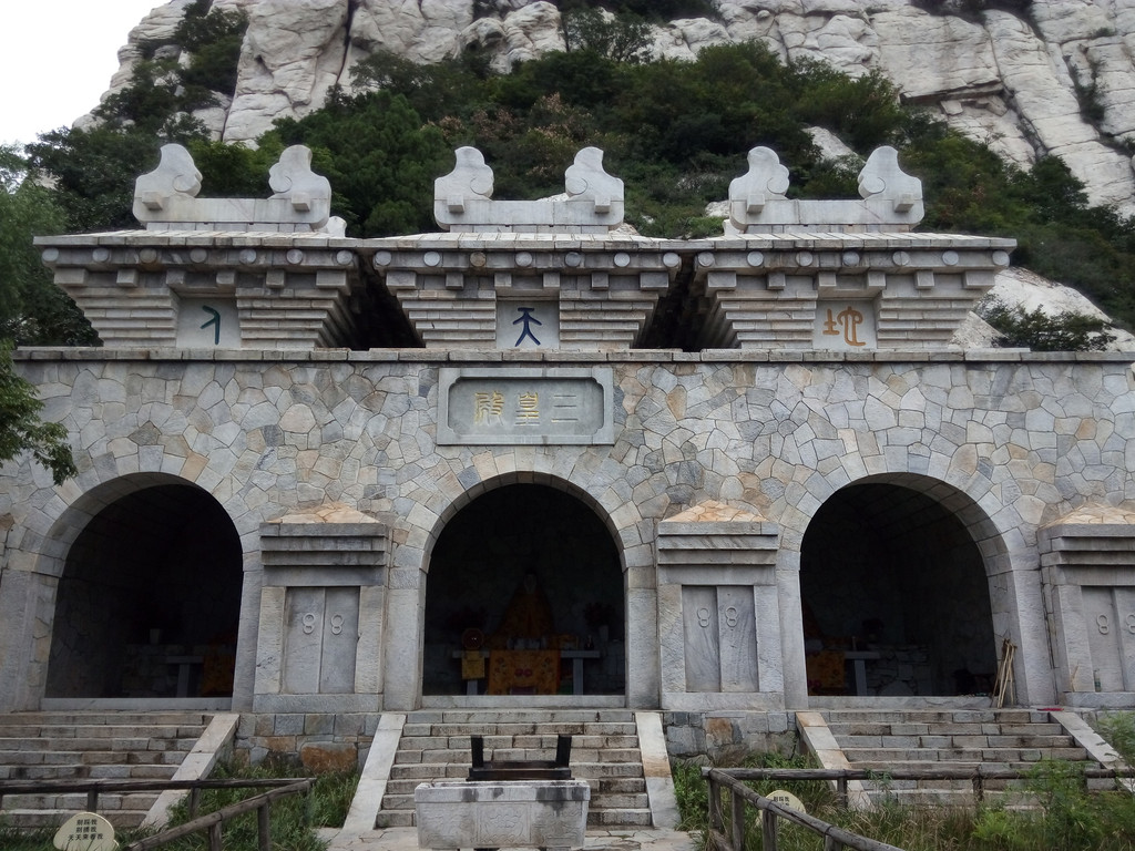 两次询问过来游人,都说还远,正当失望之时,一位保洁工告之很快就到了,我不禁加快脚步,一鼓作气又上、下两大段石阶,终于登上三皇寨,但眼前情景令人沮丧,这里只有一座现代新建的石屋三皇阁,旁边的嵩山禅院小门也未开,依山而建的无量圣殿与观音阁、耸立于峭壁的钟鼓楼都进不去,背后的山崖也景致一般。
