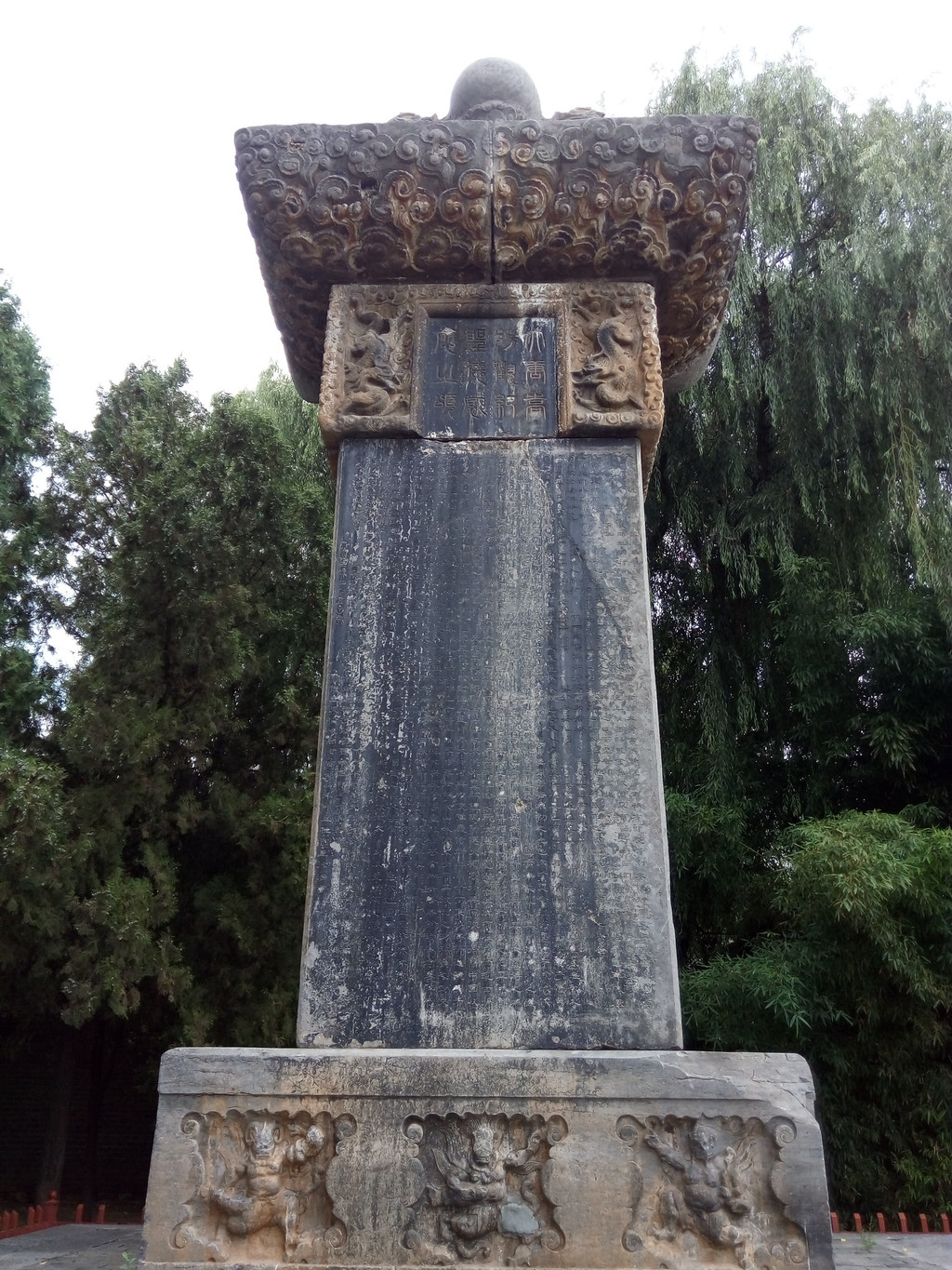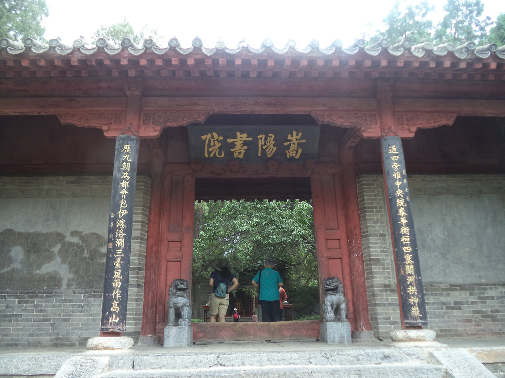 嵩阳书院位于太室山南麓山脚下,我们去时大门正在维修施工,其标志“高山仰止”坊也不见了,游客只能从边上临时小门出入。嵩阳书院在历史上曾是佛教、道教场所,但时间最长、最有名气的是作为儒教圣地,以理学著称于世,宋景祐二年(公元1035年)更名为嵩阳书院后,此地一直是历代名人讲授经典的教育场所、中国古代四大书院之一,范仲淹、司马光、程颢、程颐、杨时、朱熹、李纲等都曾在此讲学授课,司马光《资治通鉴》第9至21卷也是在此完成的。嵩阳书院还是朱程理学的发源地和传播中心,“吾道南矣”的故事就发生在这里,福建将乐县人杨时是程门四大弟子之一,在此学成归闽时程颢送时曰“吾道南矣”,意思是我的学说可以传播到南方去了,后来杨时果然成为二程理学南传和发展的重要人物,人称“道南第一人”。嵩阳书院内古迹较多,有刻于公元535年、将94尊大小佛像集于一石的东魏伦统碑,有建于唐玄宗天宝三年(公元744年)、高9米的河南最大石碑大唐碑,