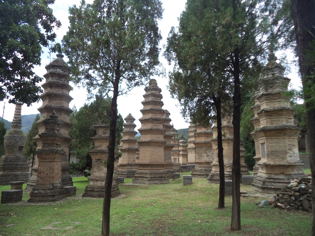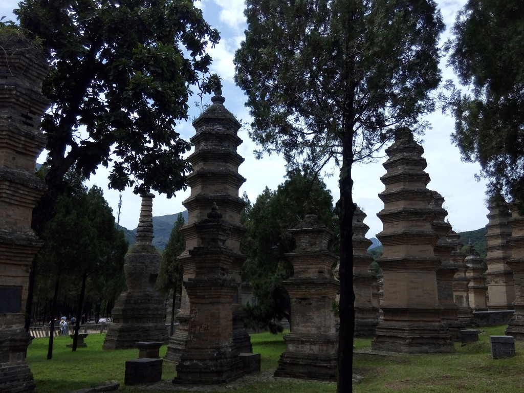 少林寺创建于北魏太和十九年(公元495年),是孝文帝为安顿来朝传授小乘佛教的印度僧人跋陀而敕建,因坐落于少室山北麓密林之中,故名少林寺,唐初因少林寺十三棍僧助唐有功,受到唐太宗的封赏,从此名扬天下,被誉为天下第一名刹。塔林则是少林寺历代和尚的坟墓,现有多达232座,塔的高低、大小和层数的多少,主要根据和尚们生前对佛学造诣的深浅、威望高低、功德大小来决定的。少林寺名声不在佛教本身而在武功,我们对二者都不感兴趣,匆匆拍几张照,前后用时不到20分钟,真正是走马观花、浮光掠影了,但这里却游客众多,人流汹涌,看来大部分人到登封主要是奔少林寺来的。