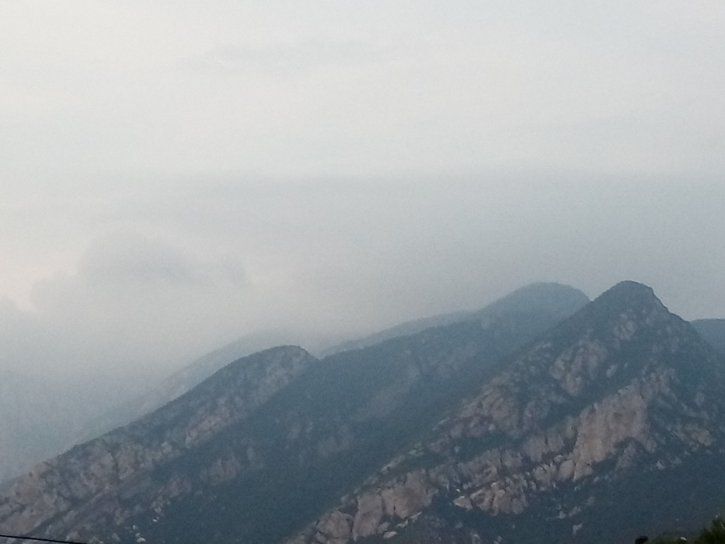 行宫前有个大平台,是赏景的好地方,在此可看左右山崖和远眺市区,这里也是我们计划中的终点,