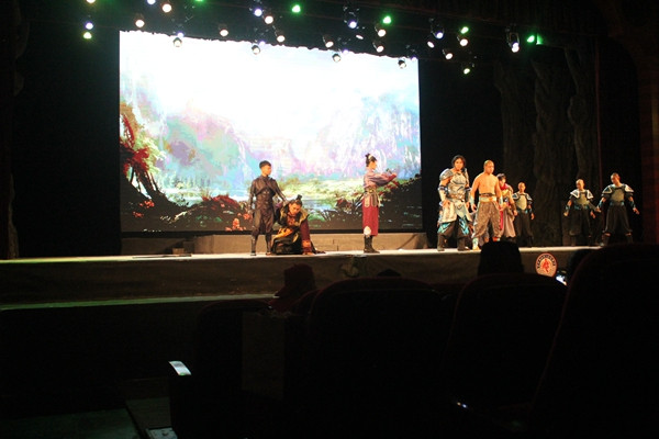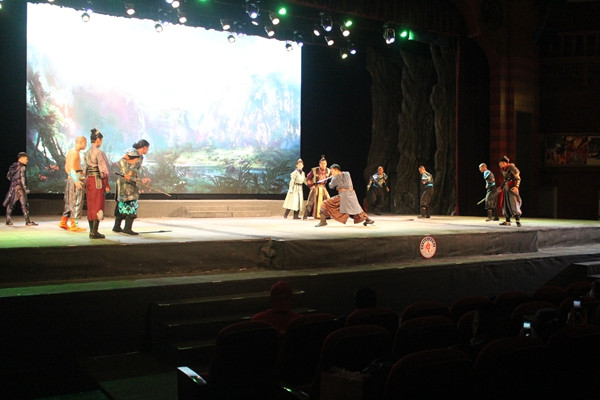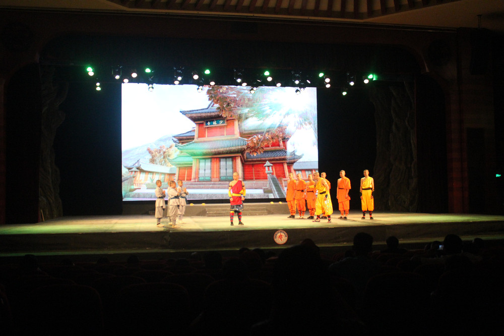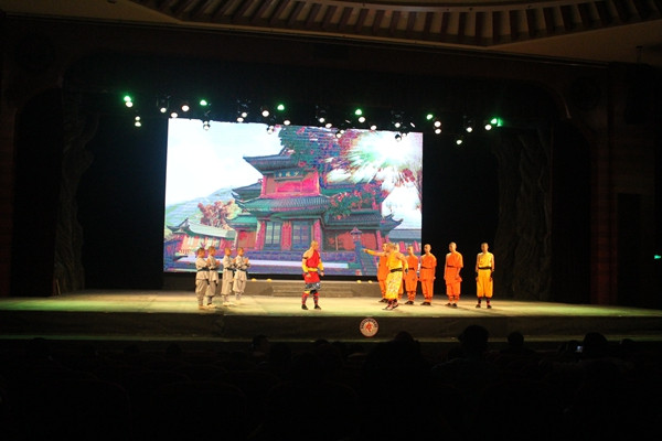 登封禅武大酒店止戈剧院结合了先进的灯光音响设备,配合大屏幕舞台屏,用“融合东西方现代技术,重振中国2500多年的角抵文化,娱乐当代大众”的方式演绎出少林十三棍僧救唐王的故事。