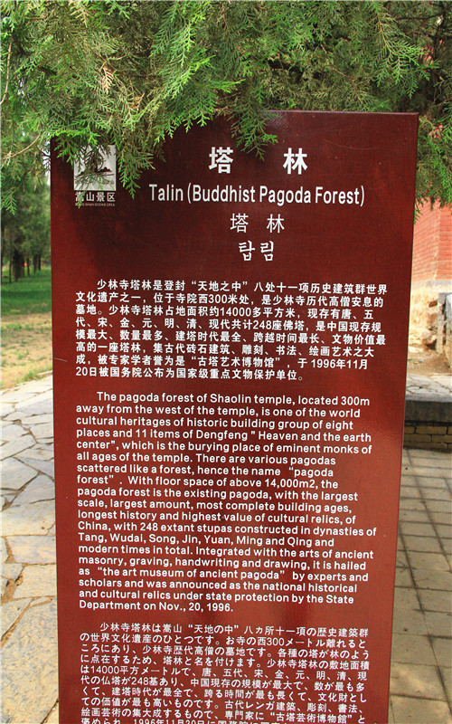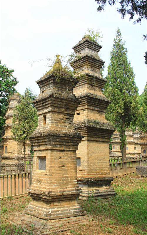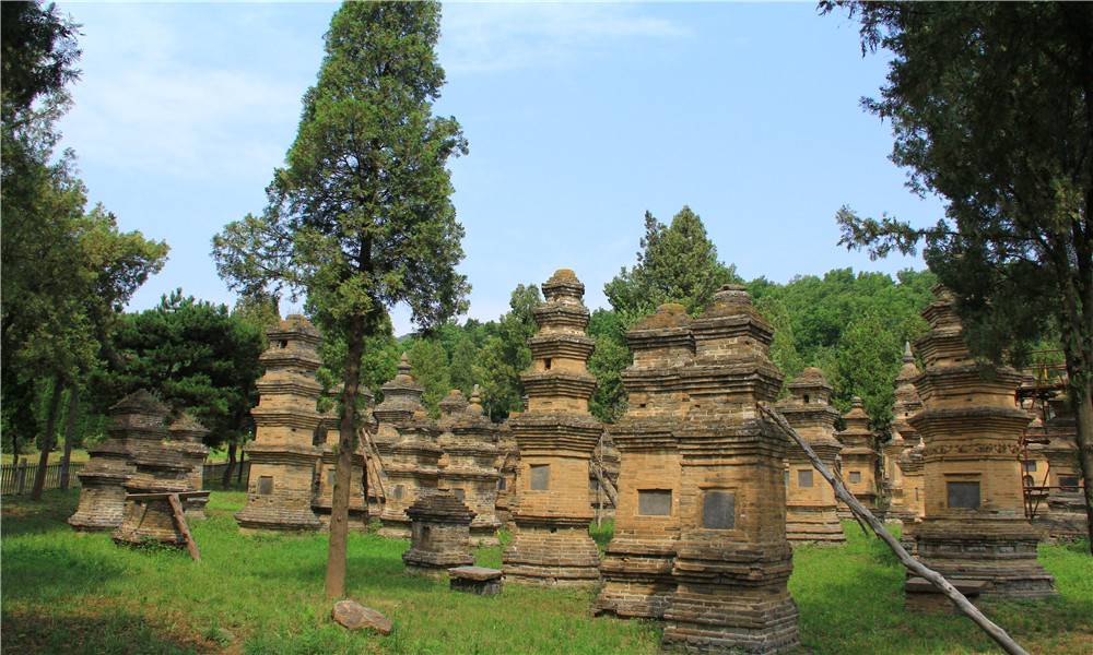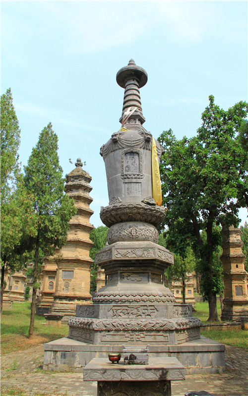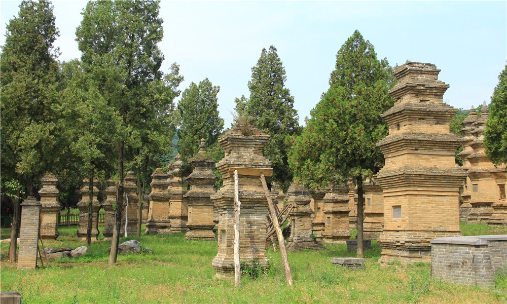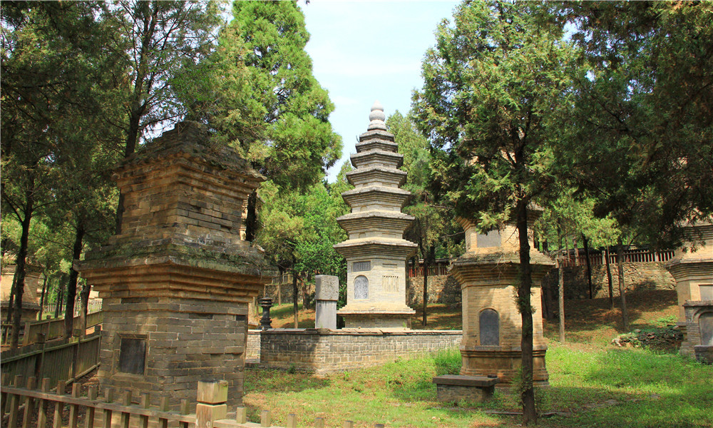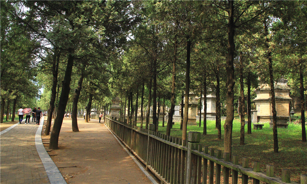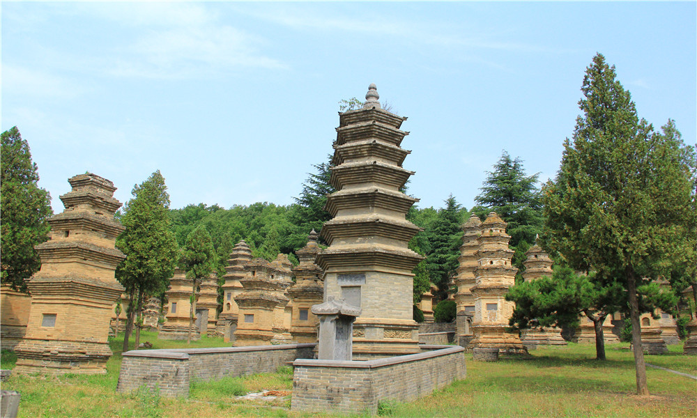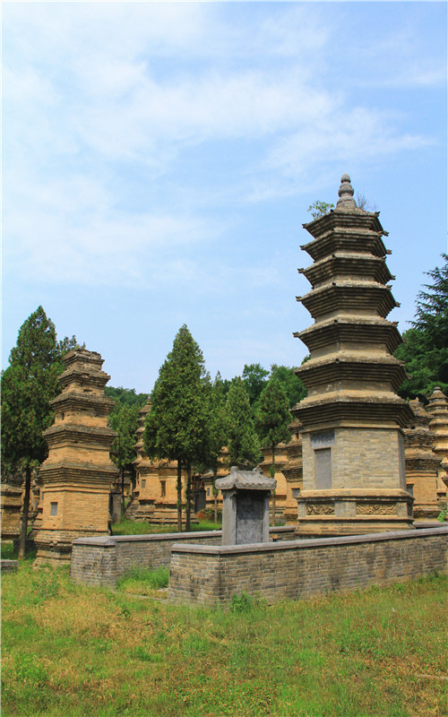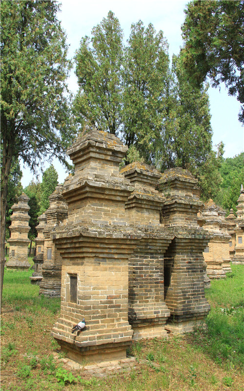 塔林在少林寺西300米的山脚下,是自唐朝以来历代少林寺主持的墓地,1000多年来,已经建成250多座,是中国最大的塔林。