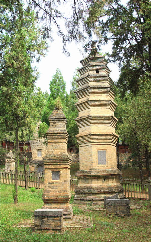 塔的大小不等,形态各异,大多有雕刻和题记,反应了各个不同时期的建筑风格,是研究中国古代砖石建筑和雕刻艺术的宝库。