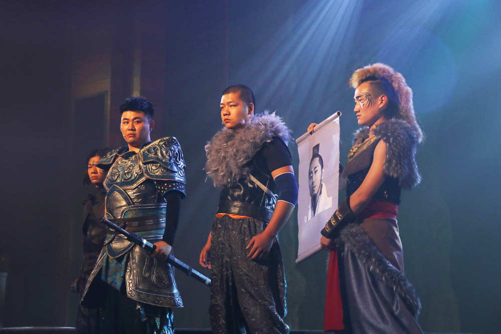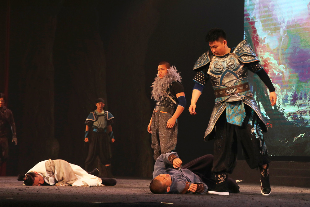 谢幕的时候,一直参与“打斗”的小伙子们脸上、脑门上都是汗水在淌……