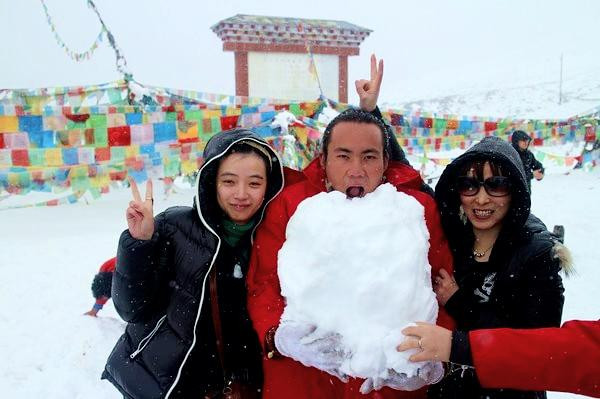 成都妹子很难得看到雪,不惧高原反应,全部玩疯咯