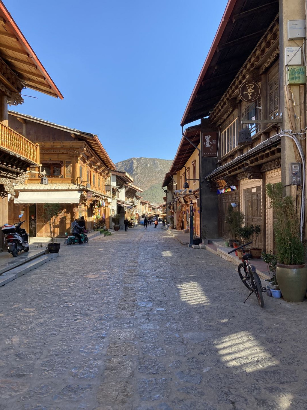 我们住在香格里拉市的独克宗古城,这里曾经是茶马古道上的一座重镇,石板路上的马蹄印仿佛在向我们娓娓讲述当年走马帮的故事。独克宗古城是我国保存的最好、最大的藏民居群,我们的房间按藏式风格装修,放下行李我们就在古城逛了逛,现在是淡季,游客很少。独克宗古城有世界最大的转经筒,要几个成年人合力才能转动,我们到达的时候正好还有几个游客,大家就一起合力顺时针转了三圈,心中默默祈福。