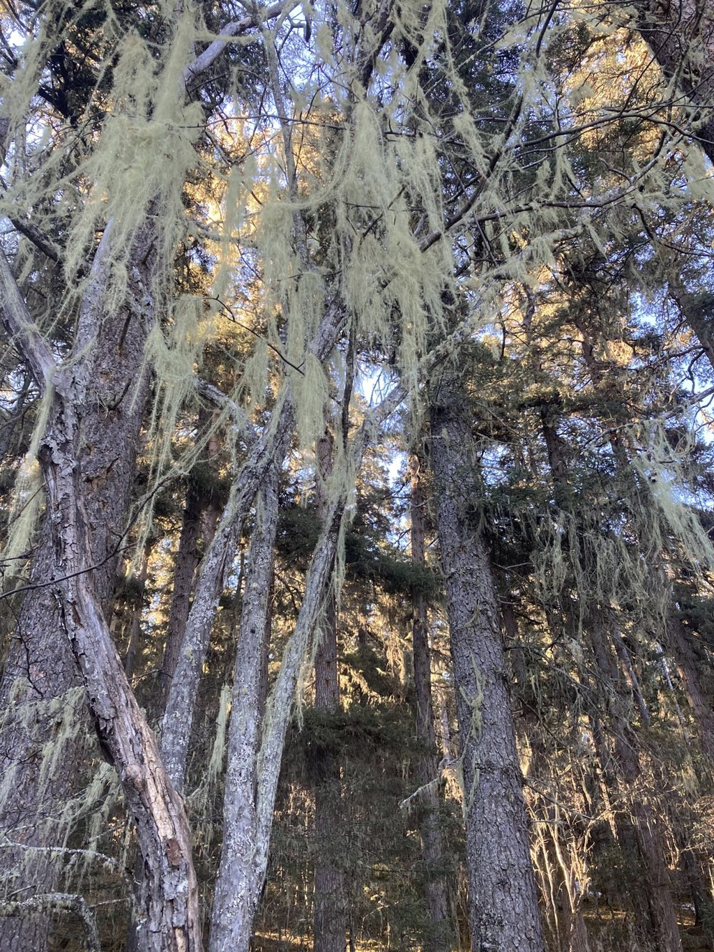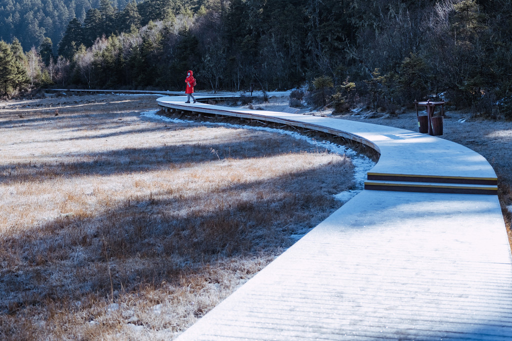 冬天的公园一切都是安静的,湖水被风吹起涟漪,草地褪去了绿色,花儿躲在地下等待来年绽放,栈道上留着一层薄冰,小松鼠也蜷在窝里我们寻了半天都没发现踪迹,栈道两边的云杉冷杉上挂满了“树胡子”,就是这里环境良好的证明。我们沿着栈道慢慢走,1个多小时就到了班车停靠点,坐车回到门口,正好中午。