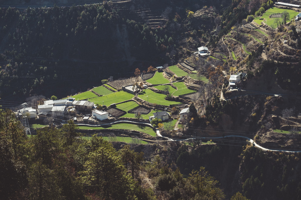 一路上我们经过了多座高山,欣赏了纳帕海,远眺了白马雪山,俯瞰了金沙江大湾,冬天感觉就是宁静,恰逢天公作美,阳光普照,我们一路欣赏青山雪峰,有时候一转弯还能发现散落山间的村落和河流,看到好的风景就停下来拍照,虽坐了几个小时车,但不觉得累,心情都很兴奋。前几天下了雪,有的地方雪还没化,我们还玩了会儿,很久没玩雪了,这里的雪不像我们在南方见过的湿乎乎的,感觉很干,很难捏成团,雪花很大,更像冰花,像是下过一场后结了冰,又下一场,层层叠加而成,在阳光的照射下点点发光,好似水晶,非常漂亮!