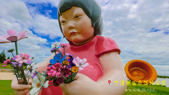 远远就看到了乐岛上的帽子和小女孩雕塑,这是美院的设计师按照自己女儿的形象设计的。