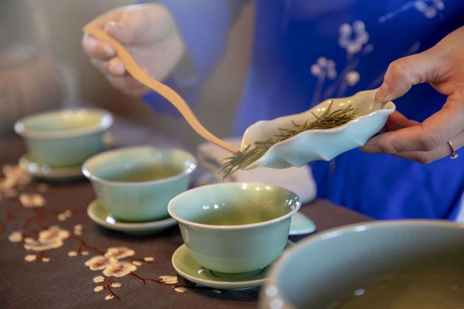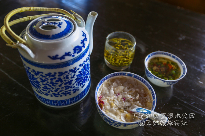 到了竹楼,一定得尝尝这里特色的“下渚湖三道茶”。