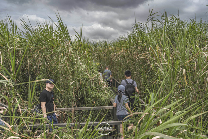 远处的观鸟平台在狗尾巴草海里看着也是特别突出。