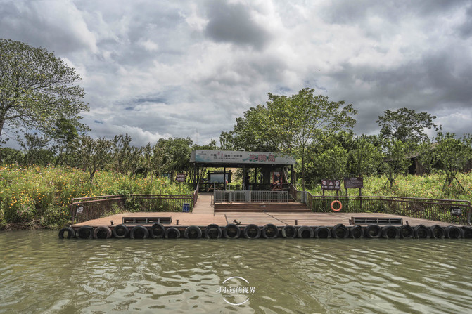 买完票登上船就会沿着宽阔的河道出发第一座小岛了,船在满天低云的河道里穿梭,推开的波浪泛着涟漪一圈一圈的到边上的芦苇,把头探出窗子,明显感觉到风都把头发吹直了,也能看到边上的芦苇和树在风力的作用下一个劲的朝着一个方向低头弯腰。流云的速度很快,我们的船匀速的穿越者,时而会发现旁边飞出几只白鹭、灰鹭,有的落在树枝头休息,有的展翅飞翔着,不过能感觉他们飞的很慢,台风的影响,感觉身形都有些被吹歪了,不过还是奋力的飞行,这让我想起来泰戈尔的那句:“既然选择了远方,便只顾风雨兼程”,台风也不算个啥了,只要我奋力的拍打翅膀前进就行,生活里又何尝不是如此。