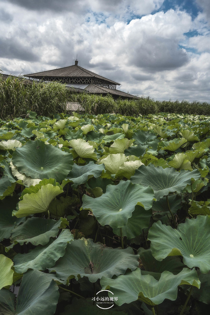 走过一片水上花海,就能看到这个鸟巢打卡点了。黄的花、绿的叶,加上蓝天白云,这个纯天然的景再适合拍照不过了,只是作为男游客,倒是没有那么重的自拍留念打卡的想法,所以只是拍了个空景给你们看看,女孩子倒是可以来这里凹造型,低角度加点前景拍个背影就可以出片了。