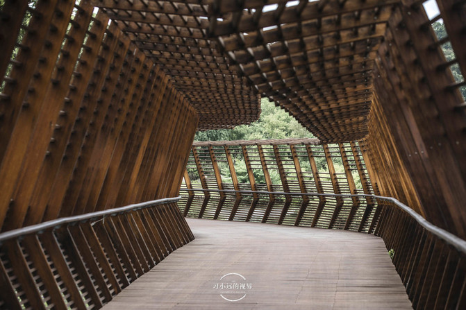 这里的走廊和休息的座椅都是很特别, 比如 这种支架的绿色走廊,还有边上由4棵树做成的休息之处。
