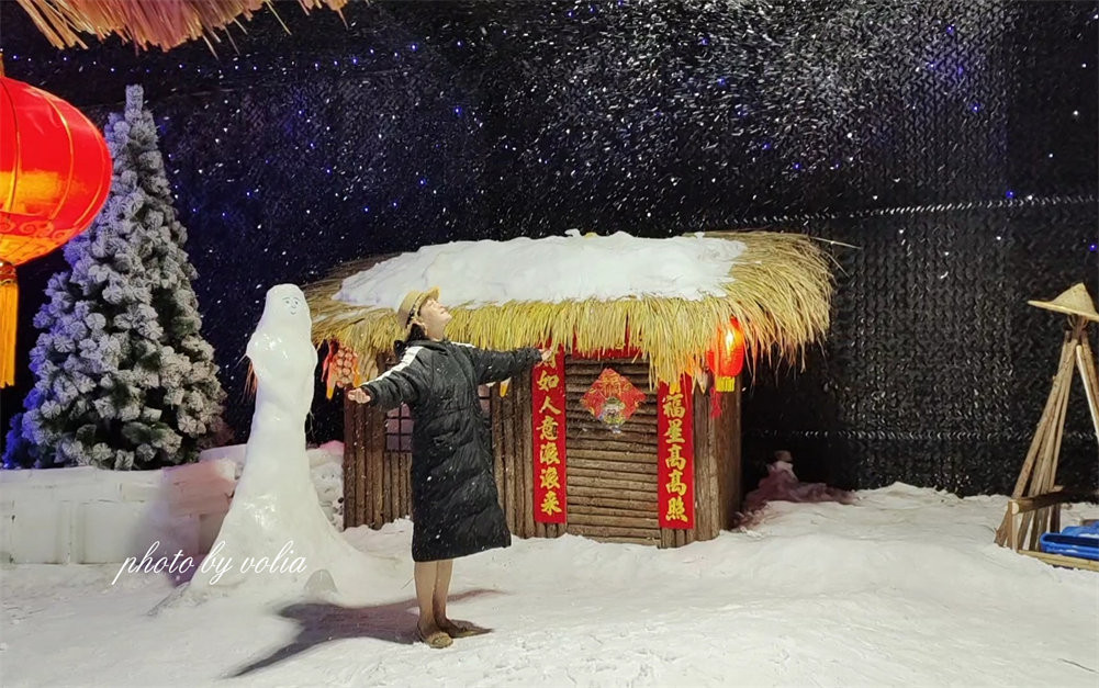 “我慢慢地听雪落下的声音...”打造了一个真实的雪夜乡村实景,漫天的雪花飞舞,雪花落在肩上头上,这一刻仿佛穿越了~