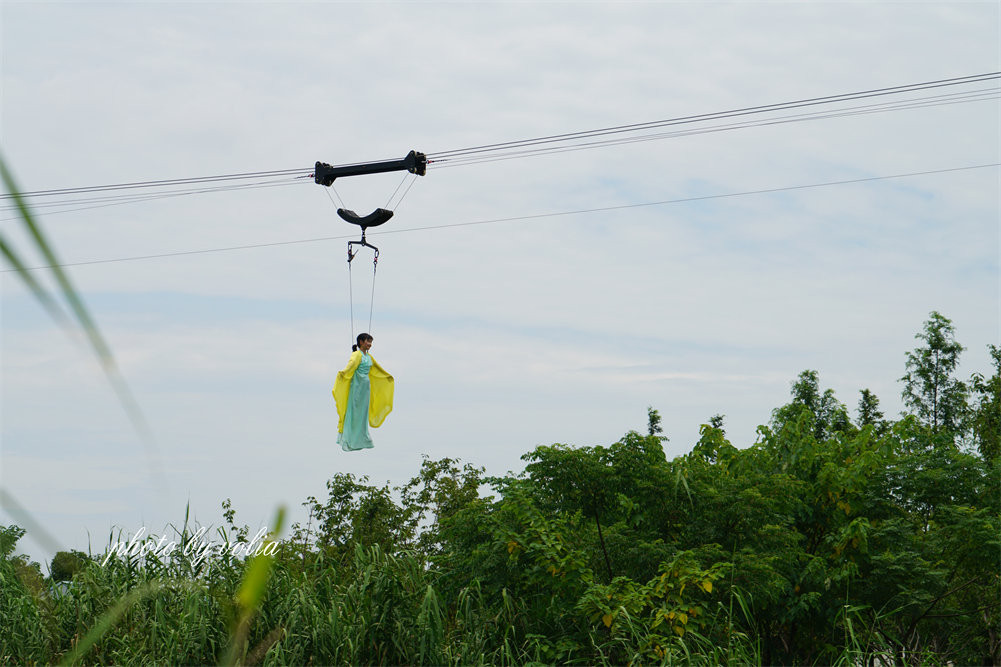 乐岛绝对是下渚湖的网红打卡地,很多盆友来这里体验吊威亚飞天,换上汉服,在芦荡之间穿梭飞过!那种感觉很嗨~!真可以过一把当演员的瘾~