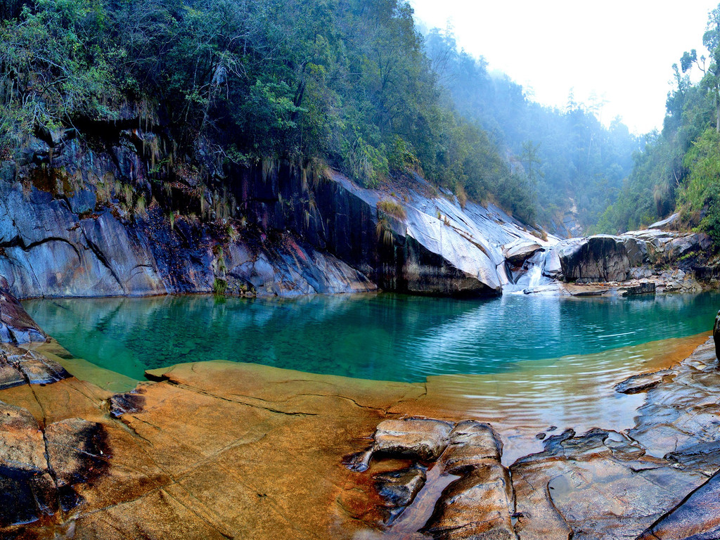 梧风洞的水,号称“江南九寨”,梧风洞,并非是个洞,其主体是马溪。马溪,从大茅山主峰笔架山流下来,穿谷而过,直至双溪湖。马溪是花岗岩峡壁的河谷景观与原始森林的生态景观,完美结合的典范。