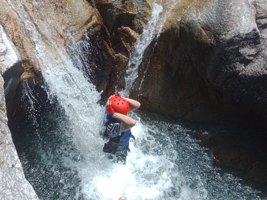 溯溪活动需要同伴之间的密切配合,利用一种团队精神,去完成艰难的攀登,对于溯行者是一种考验,同时又得到一种信任和满足,一种克服困难后的自信与成就感。一处壮美的瀑布在溯溪人的眼里便是悬崖,在潮湿而又长满青苔的瀑布里攀岩是一种新的挑战。