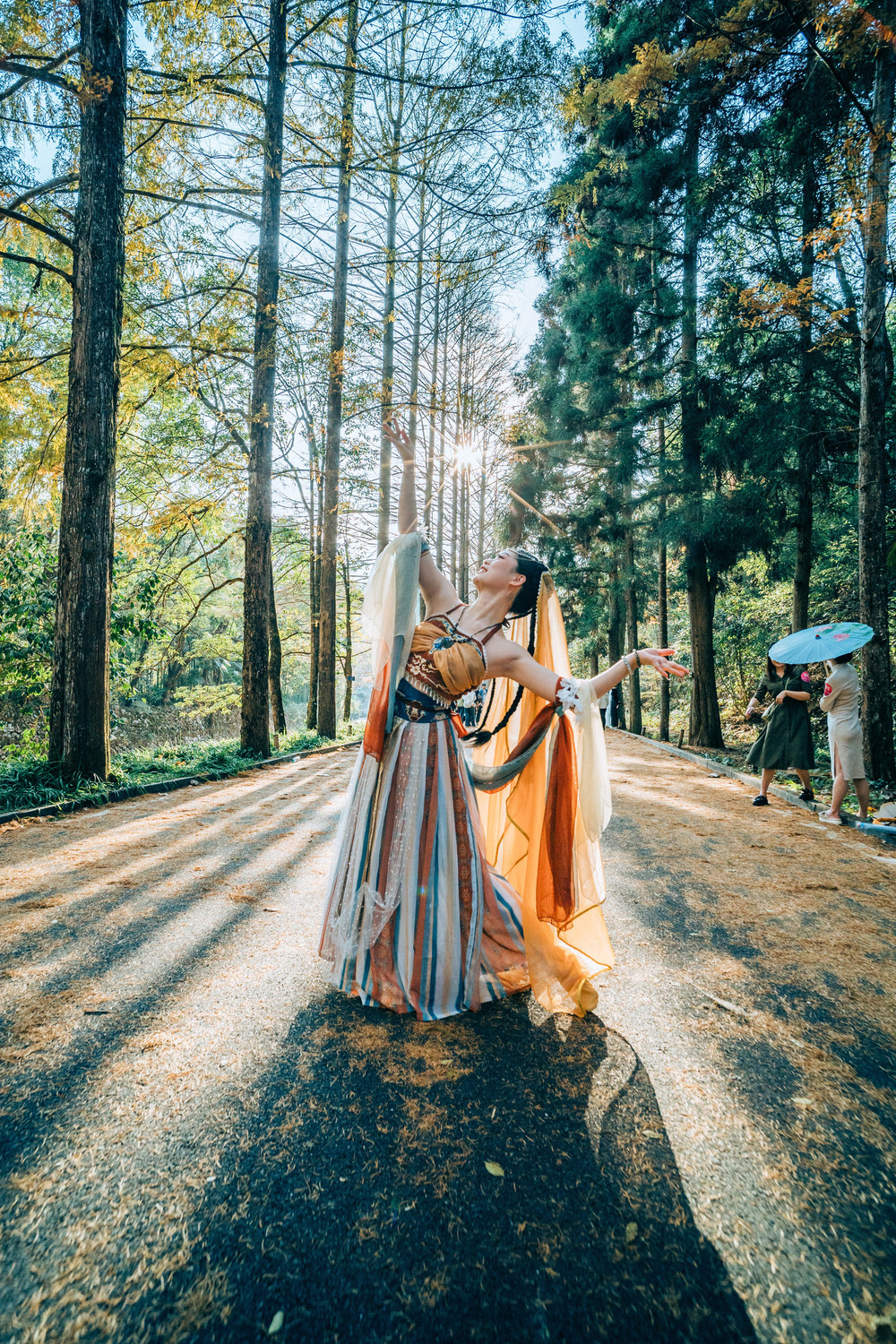 更有潇洒的忘情者,情不自禁地手舞足蹈,大跳热舞。我想这才是上饶人真挚的本色。热舞表达了对生活的热爱,感染力极强,从他们的身边路过时也按捺不住扭了起来。诸多亮丽的身影在水杉林道中来回闪现,是最美的人文风景线。