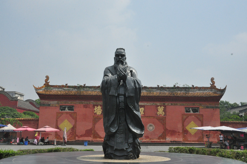 2021年5月8日中午11点左右,我们从德阳石刻公园出来,乘16路公交到文庙广场下车。步行不远就是德阳文庙。