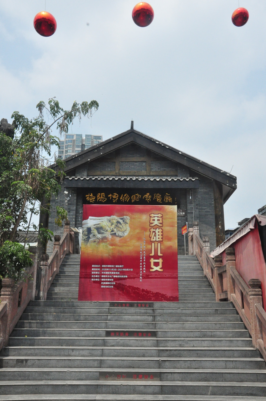 文庙中有一孔子生平展览馆,展馆面积很小,内容也匮乏,本以为德阳博物馆也在文庙内,经询问工作人员,博物馆在文庙外面,要走后面小街过去。我们出了文庙,绕到后面小街寻找博物馆。后面的小街是一条特色步行街,也是美食街,正好在此吃了小吃,算是午餐。在美食街的中间,看到所谓的博物馆,一座二层小楼,一个高台阶上去,就一个展厅,里面只有一个图片展,询问工作人员,德阳博物馆就是这样,没有文物展,也没有其他分馆,德阳博物馆也未免太寒酸。